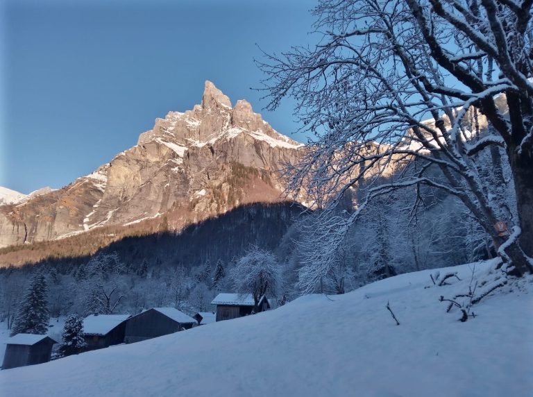 Les villages de Giffrenant, du Pelly et du Frénalay, isolés au bout de la commune de Sixt, sous les imposantes falaises du majestueux cirque du Fer à Cheval, sont les témoins des mouvements géologiques d’ampleur qui ont marqué l’histoire du territoire. En 1602, l’écroulement de Tête Noire, sommet dominant le cirque, provoqua une coulée de lave torrentielle qui engloutit partiellement les trois villages. Ils étaient accompagnés d’un quatrième hameau, le village d’Entre-Deux-Nants, qui lui fût totalement détruit. Plus proche de nous, durant l’été 2025, ce sont plus de 40 000 m3 de roches qui se sont décrochées de la falaise de la Corne du Chamois provoquant un panache de fumée conséquent et une vive inquiétude des personnes sur le site, heureusement sans conséquence.